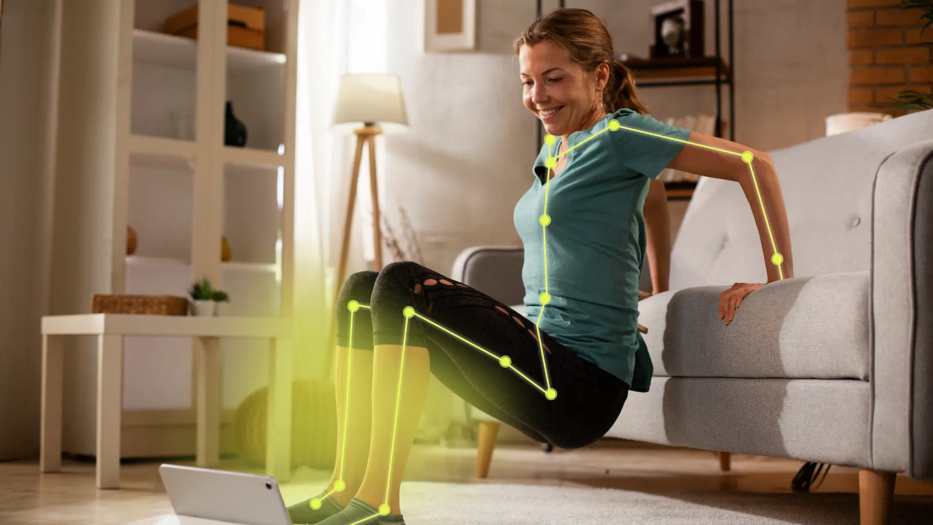AI tracks 111 body points to provide corrective guidance during exercise and share performance data with the physio.